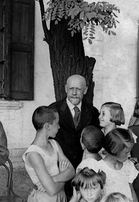 Януш Корчак у здания Дома сирот. 1938–1939 гг.