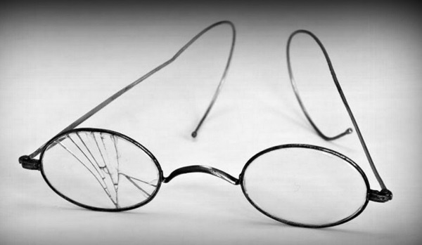 Очки Януша Корчака с трещиной на левом стекле, найденные на прикроватном столике, куда доктор положил их накануне эвакуации детского дома из гетто в концлагерь Треблинку. Через несколько дней Януш Корчак вместе со своими детьми вошел в газовую камеру.