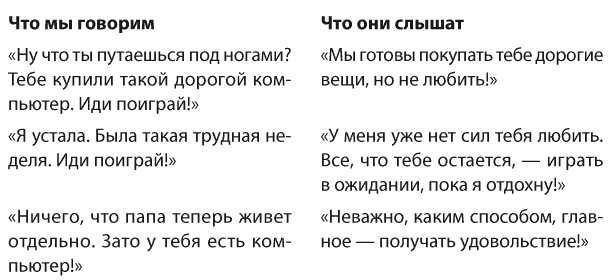 Пете было шесть лет, когда родители развелись. Как бы извиняясь за причиненные ему страдания, мама купила компьютер. Это по ее инициативе произошел развод, и сильная, амбициозная женщина решила: «Справлюсь!» А еще: «Зато я воспитаю талантливого ребенка, и никто не скажет, что я – плохая мать!» Мама Пети сама поощряла игру на компьютере в тот период, когда ребенок нуждался в особом внимании, подтверждении того, что его любят, несмотря ни на что! Петя принял подарок с радостью. Маленькому ребенку тоже было легче играть и ни о чем не думать, чем пребывать в тревожном ожидании еще более худших перемен. На выходных он не виделся с отцом, родители совсем не общались друг с другом, а в будни мама была занята, ей теперь самой нужно было выплачивать кредит за квартиру. И компьютер стал чем-то вроде суррогатного родителя. Мама Пети спохватилась, когда ребенок пошел в школу. К этому времени он потерял интерес к людям, и занятия в школе, общение со сверстниками показались ему скучными, что отразилось на отметках. Но Петя уже и не ждал ничего хорошего… Он привык к нехватке любви и научился спасаться, уходя в виртуальный мир.