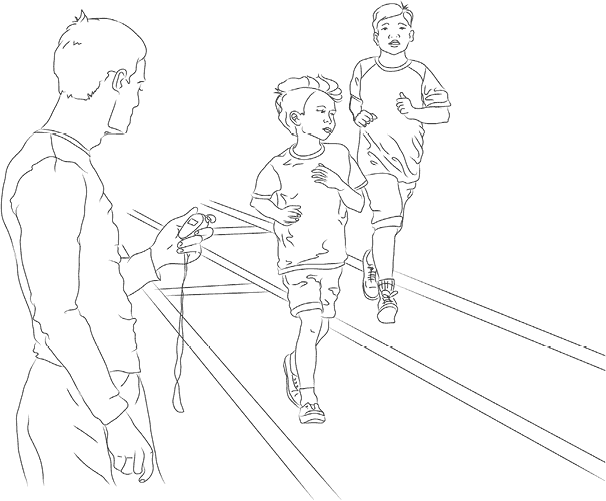 Два брата вышли с папой во двор погулять. Сначала играли в мячик, а потом решили соревноваться в беге. Старший брат, конечно, бегал быстрее, но папа устроил так, чтобы оба мальчика приходили к финишу почти одновременно: папа там стоял с секундомером и определял «победителя».
