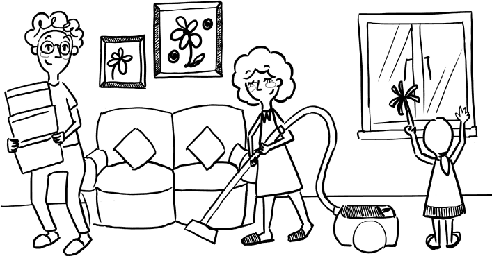 У меня опять этот повторяющийся ночной кошмар. Все делают работу по дому, и все счастливы!