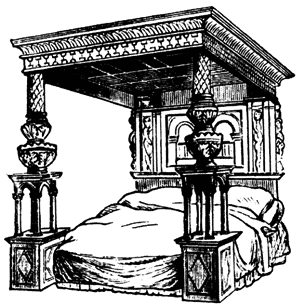 Приблизительно в 1000 году в Византии придумали деревянные кровати на высоких ножках с сильно приподнятым изголовьем. Матрасы богатых византийцев были набиты гусиным пухом. Ковры и звериные шкуры обеспечивали дополнительный комфорт. В позднее Средневековье кое-где уже начали устанавливать в середине жилой комнаты кровать с балдахином и пологом для защиты от насекомых. Некоторые кровати делали такими высокими, что забраться в них можно было только с помощью лестницы. На кровати Генриха VII была подстилка из соломы, покрытая льняным полотном, и толстая перина, на которой лежали надушенные одеяла, а поверх еще одно – из шкурок горностая. Изображения таких роскошных постелей создают впечатление, что люди в них в основном сидели. Причина кроется, возможно, в том, что занимающие высокое положение в обществе персоны не хотели, чтобы их видели лежащими: это могло уронить их авторитет. К тому же строго горизонтальная поза отводилась совсем другой категории людей – мертвым.