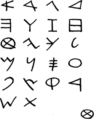 Демонстрация 7. Детям показывают карточку с финикийским алфавитом. (Плакат 6.)