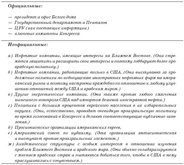Группы, которые влияют на формирование американской политики по Ближнему Востоку. Формальные и неформальные