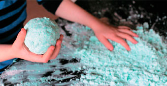 Пенотесто настолько легкое и рыхлое, что поначалу вам будет казаться, что вы играете с облаком! Затем оно превращается в мягкую, рассыпчатую массу, из которой можно что-то слепить, сдавив посильнее. Этот рецепт не подходит вам, если ваши дети пробуют игровые материалы на вкус или облизывают руки во время игры. В этом случае вы можете приготовить тесто по безопасному рецепту (см. далее).
