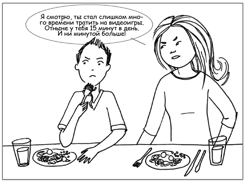 Вместо этого можно дождаться ужина, и когда все усядутся за стол, сказать: «Я знаю, что вы в последнее время сильно увлеклись видеоиграми. К сожалению, это нехорошо. От этого страдают уроки, да и на другие занятия времени не остается. Нужно нам составить новый план. Есть соображения?»