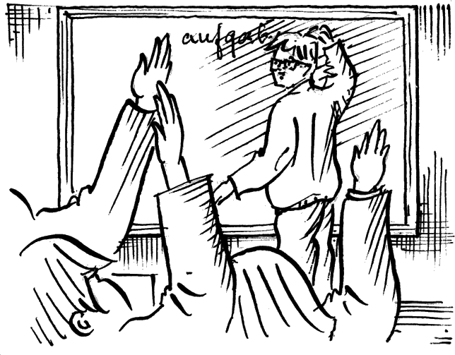 В классе дети от 6 до 12 лет. Естественно, что младшие иногда подходят к старшим, чтобы они проверили их работу. Марсель в классе – «профессор» математики, и Матиус принес ему уже решенные примеры. Марсель, отвлекшись от своей работы, внимательно просматривает записи своего товарища. Он спокоен и невозмутим, как настоящий учитель, и, обнаружив ошибку, вручает Матиусу ластик. Проверка завершена, ошибка исправлена к общему удовлетворению.