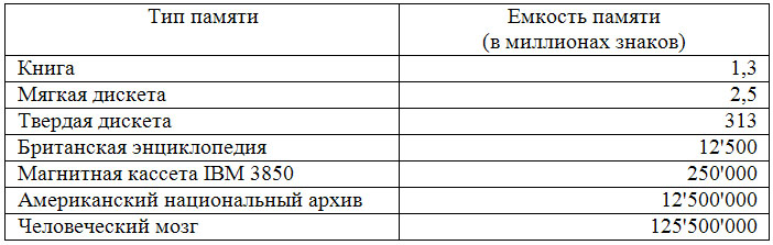 Один из американских научно-исследовательских институтов (RCA Corp. Advanced Technology Laboratories) опубликовал очень интересную сравнительную таблицу различных типов «памяти». Вот эта таблица: