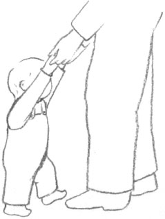 • Станьте лицом к своему ребенку. Возьмите его руки в свои.