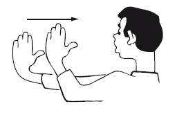 2. Медленно передвигать палец полусогнутой руки сверху вниз и, не двигая головой, следить за ним глазами.