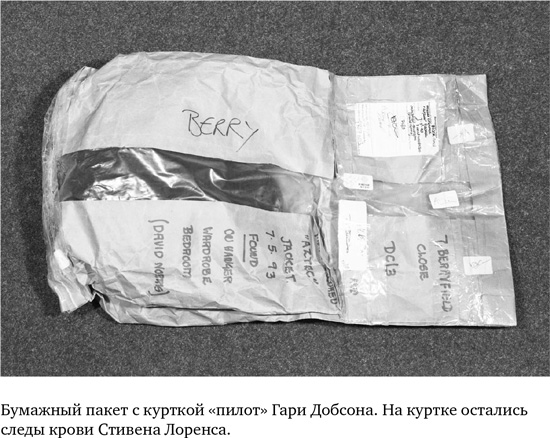 Джармен два дня изучал куртку под микроскопом и увидел с внутренней стороны манжеты маленькое, полсантиметра диаметром, пятно крови. После анализа ДНК он заявил присяжным: шанс, что эта кровь принадлежит не Стивену, составляет меньше, чем один на миллиард. Пятно было оставлено свежей кровью: видимо, она капнула с ран Стивена или с ножа убийцы. Джармен также нашел крошечные следы высохшей крови Стивена на дне пакета, в котором лежала куртка. А в этих следах – и волокна с куртки и рубашки, которые были на Стивене в роковой вечер. Дополнительные волокна с одежды Стивена обнаружились при вторичном обследовании клейкой ленты, с помощью которой после убийства собирались частицы с куртки Добсона.