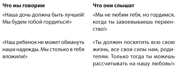 Когда мы не только готовим своих детей к социально-экономической гонке, но и сравниваем с другими детьми, мы наносим глубокую травму отвержения. Нам кажется, что так мы подстегнем ребенка действовать быстрее и лучше. А на самом деле мы лишаем его всякой мотивации достижений. Потому что дети готовы бороться и проявлять свои лучшие качества только при условии безусловной родительской любви. Они надеются, что мы им желаем счастья. Они надеются разделить это счастье с нами в будущем.