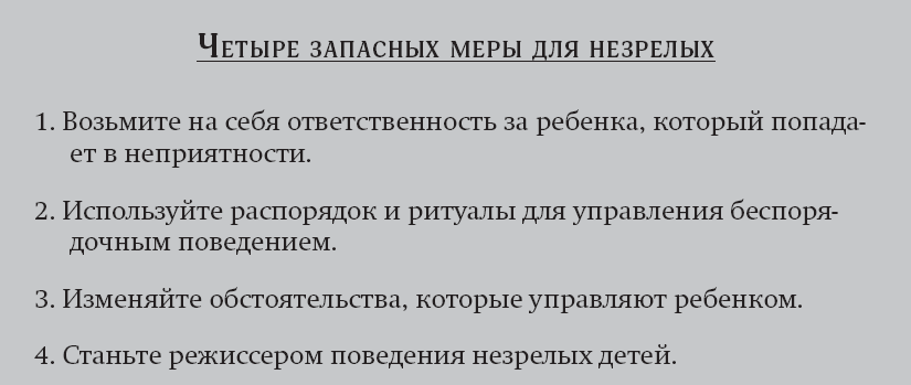 Когда ребенок постоянно попадает в неприятности, лучшей воспитательной стратегией будет установить над ним надзор взрослого, который будет ответственно руководить его взаимодействием с другими людьми и разбираться с поведением до того, как оно станет проблемой. Например, если посадить в песочницу к другим детям ребенка, который полон атакующей энергии, это не кончится ничем хорошим. Если взрослые знают, что есть вероятность драки, тогда необходим надзор, чтобы помогать детям делиться и соблюдать очередь.