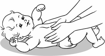Приемы вибрации – потряхивание и встряхивание. Прием потряхивания обычно используется при массаже груди. Массаж производят следующим образом: ладони обеих рук нужно наложить на нижнюю часть грудной клетки ребенка, как бы обхватив ее, при этом большие пальцы правой и левой руки должны находиться рядом друг с другом. Вибрацию необходимо производить легкими ритмичными надавливаниями.