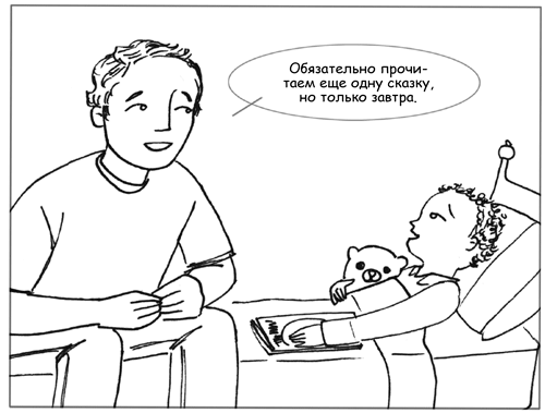 Важное предостережение: многие родители неоправданно часто отвечают «нет» на желания ребенка. Это говорится автоматически, зачастую безо всяких на то оснований. Не трогай шарик. Не бегай. Не плескайся. Мы не считаем, что дети должны слышать как можно больше запретов. Разрешение с условием гораздо эффективнее прямого запрета: «Да, ты можешь искупаться позднее» или «Да, мы прочитаем еще одну сказку, но только завтра». Таким образом, ваша задача не научиться отказывать и запрещать, а осознать, как важно объяснить детям, что существуют границы и требования, чтобы им все легче удавалось при необходимости соблюдать их самостоятельно.