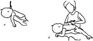 Рис. 18.7. а – неправильное кормление. Ребенок пассивен, его тело выгнуто. Еду снимают, проводя ложкой по верхним зубам. Так ребенок подавится, поперхнется и закашляется; б – тело ребенка выгнуто, рука запрокинута назад. Так он не сможет хорошо глотать.