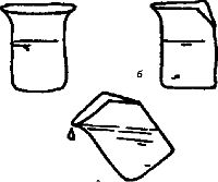 Рис. 18.9. а – пластиковый стаканчик с предохраняющим ободком хорошо подходит для обучения питью; б – край стакана вырезан, чтобы нос ребенка не упирался в него; в – так надо наклонять стакан, давая ребенку пить.