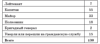 Стандартной процедурой сбора сведений является отслеживание карьеры того или иного офицера с целью выяснить, кого обошли при повышении в должностях и званиях, предполагая – при прочих равных – что именно они охотно присоединятся к возможному перевороту. Во многих странах мира данные о повышении в званиях в вооруженных силах публикуются в официальных газетах, и, начав с определенного выпуска военной академии (или училища), можно отследить карьеру любого офицера от выпуска до нынешнего момента. В некоторых странах, где данные о присвоении званий не публикуются (скажем, по соображениям безопасности), можно собрать соответствующую информацию, используя телефонные справочники за разные годы, в которых имена и фамилии офицеров приводятся вместе с их должностями. Там, где ни телефонные справочники, ни газеты не служат полезными источниками информации (как, например, в Советском Союзе), мы можем прибегнуть к другим методам: попросить старого товарища того или иного офицера организовать с ним встречу или составить мини-биографии с помощью знакомых этих офицеров; какими бы средствами мы ни пользовались, наша цель – восстановить как можно более точно карьерный путь каждого выпускника военной академии (училища). Карьерную позицию любого офицера надо сравнить с позицией его однокашников, а не с позицией его сослуживцев по части. Таблица Vпредставляет эту информацию в нужном формате.