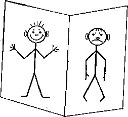 (Возьмите лист бумаги, перегните его пополам; на одной половине листа, слева, нарисуйте карандашом человечка).