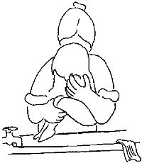 Рис. 16.1. Перед тем как положить ребенка в ванночку, согните его туловище.