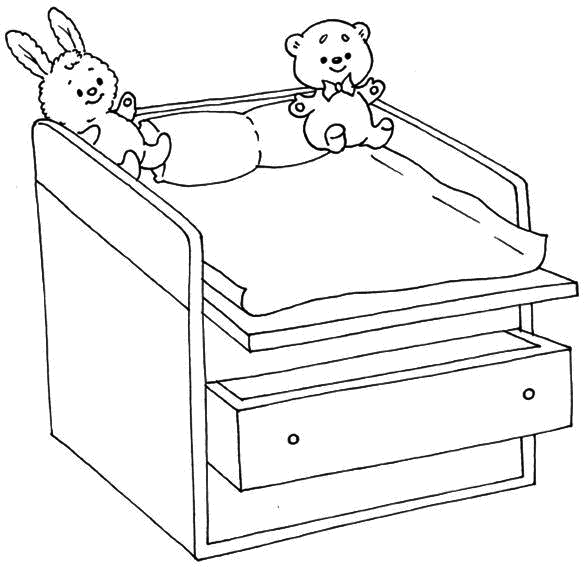 Пеленальные столики снабжены по краям ограничителями (кроме той стороны, где стоит мама). Такие ограничители нужны для того, чтобы Малыш никуда не делся (не выпал, не уполз) с пеленального столика. Удобнее всего разместить пеленальный столик на комоде для Малышкового белья. Есть специальные комоды, столешница которых представляет собой пеленальный столик. Их можно купить, специально подобрав по высоте (вы уже поняли, как определить оптимальную для вас высоту и почему это важно), либо приспособить имеющийся комод, предварительно убрав все взрослое белье или одежду и хорошенько протерев. Но о комоде чуть позже.