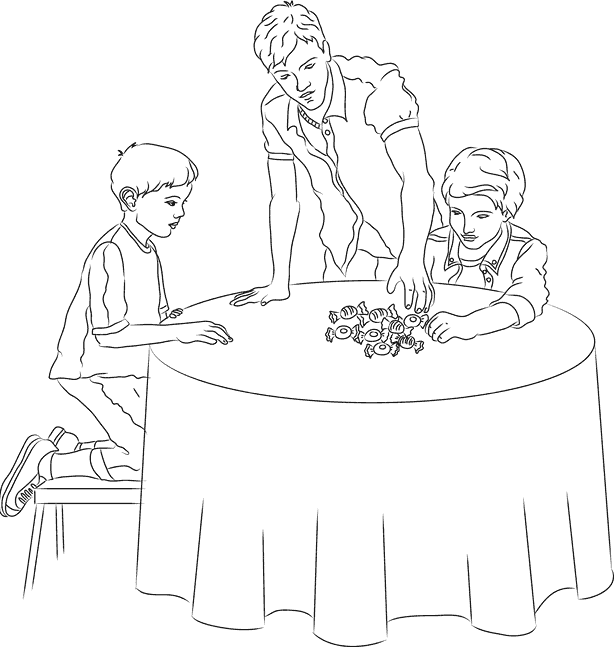Возможно, по мнению вашего ребенка, мальчики в этой истории сочтут справедливым разделить конфеты по количеству выполненной работы. Очевидно, что старший перенес больше дров, тогда, казалось бы, ему полагается больше конфет, а маленькому совсем немного – ведь он носил одни щепочки! Однако все работали добросовестно, старались изо всех сил, и, исходя из этого, важно было бы разделить поровну. Наконец, вполне вероятно, что кто-то из мальчиков очень любит конфеты и ребята это учтут.