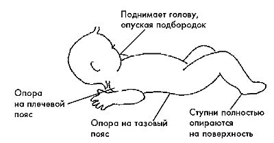 Стабильность позы – лежа на спине или на животе, ребенок равномерно распределяет вес тела, опираясь на голову, плечевой и тазовый пояс или только на туловище.
