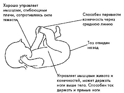 Сенсомоторное развитие ребенка 6 месяцев (одинаковая активность сгибателей и разгибателей)