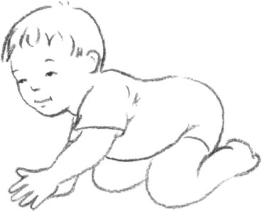 • Если ребенок уже начинает ходить, вы можете делать то же самое на двух ногах или сочетая ходьбу и ползание.