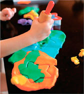 • пищевой краситель, натуральная жидкая акварель или, если дети не будут пробовать тесто на вкус, жидкая акварель (по желанию);