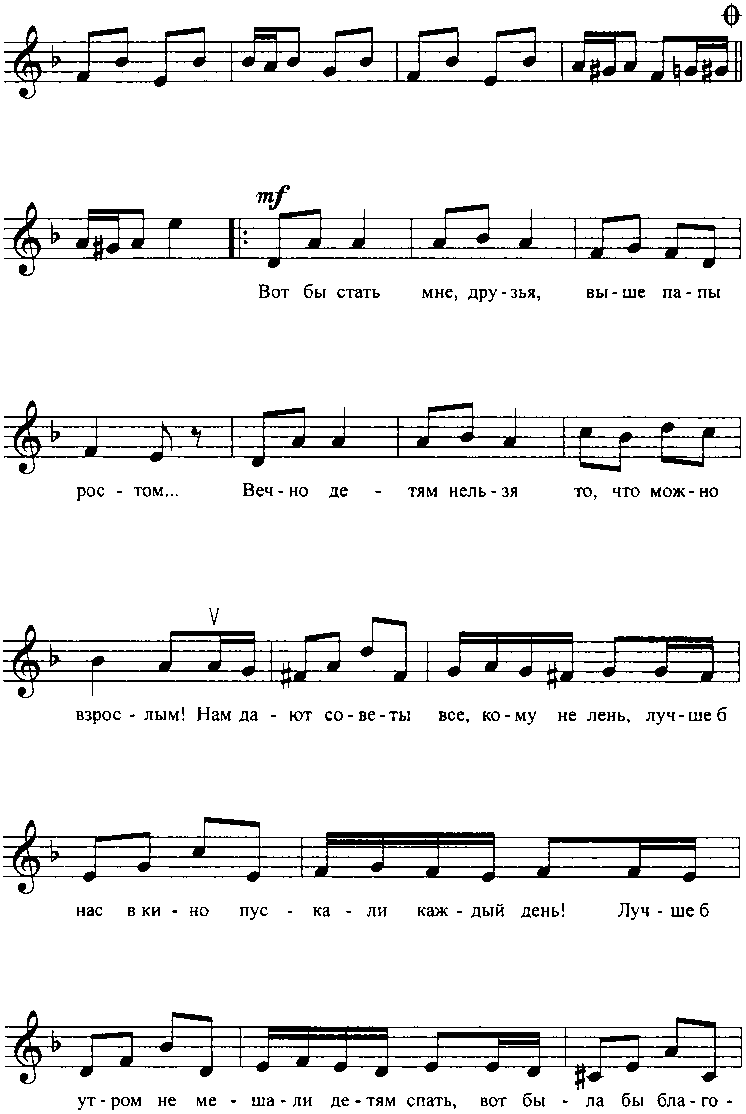 Голос. Ну ладно, твое желание исполнится, но только при одном условии: если тебе не понравится быть взрослым и ты захочешь снова стать маленьким мальчиком, это получится только в том случае, если дашь слово учиться на одни пятерки, не лениться, не спать на уроках, слушаться родителей. Если же не сдержишь своего обещания — навсегда останешься взрослым. Согласен? (Петя испуганно кивает головой.)
