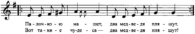 Ведущая. Ну, ты посиди, дедушка, отдохни на скамеечке, а мы с ребятами поиграем немного. (Обращается к детям.)