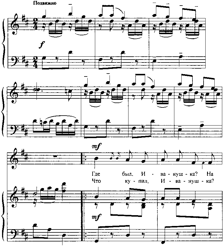 Исполняется русская народная песня «Где был, Иванушка?» с движениями.