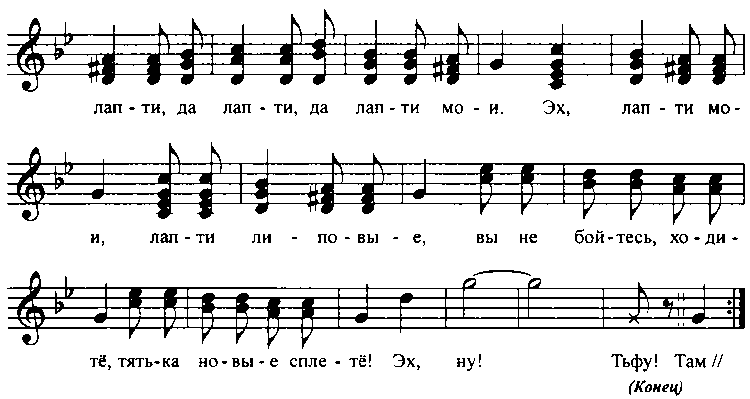 Эх, лапти, да лапти, да лапти мои.