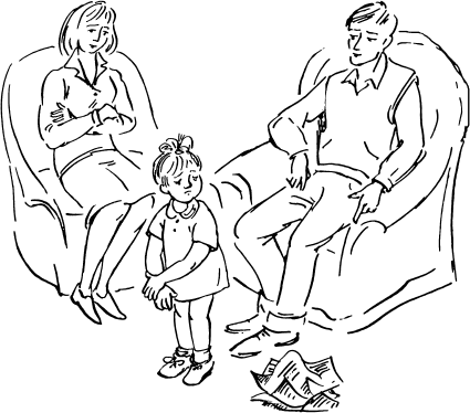 Заметим, что обязательность правила и запрет на недопустимое поведение отец передает ребенку через физическое действие: ведь девочка еще маленькая, и развернутые словесные объяснения здесь не годятся. Однако его действие не рассчитано на причинение боли. Это не телесное наказание, а действие, которое ограничивает своеволие ребенка и показывает силу родителя, его способность взять ситуацию в свои руки.