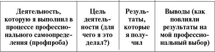 Задачи: соотнесение учащимися результатов профессиональной пробы с выбираемой профессией; оказание помощи в анализе действий по профессиональному самоопределению.