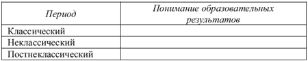 1. Заполните таблицу «Трансформация концепта "образовательные результаты" в дидактике высшей школы»: