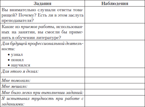• Таблицу, представленную ниже, следует дополнить на основе знакомства с материалом, посвященным проблеме внеклассной работы.