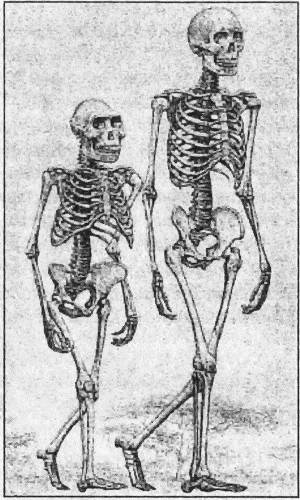 Разумеется, по нашим меркам, она не была ни красавицей, ни умницей. Ее голова напоминала обезьянью, а мозг — в сравнении с нашим — был до смешного мал. Разгуливала она на двух ногах, но спать, по-видимому, забиралась на деревья. Судя по форме пальцев, она легко карабкалась по стволам и цеплялась за ветки. Походка у нее, очевидно, была ковыляющей. Похоже, что, передвигаясь, она опиралась не на всю стопу, а, прежде всего, на сгибы пальцев ног.
