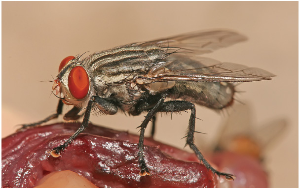 5. Падальная муха на гниющем мясе. Фото: Wikimedia Commons.