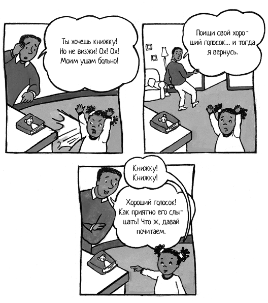 «Это было удивительно, – поделился он со мной позже. – Через десять секунд еще более громкого визга она внезапно замолчала, а потом спокойно сказала: „Книжку… книжку!“ И я тут же достал книгу и сел рядом с ней, чтобы вознаградить ее за то, что она заговорила нормальным голосом».