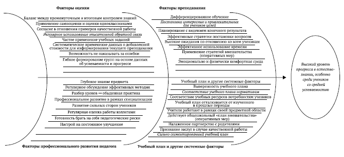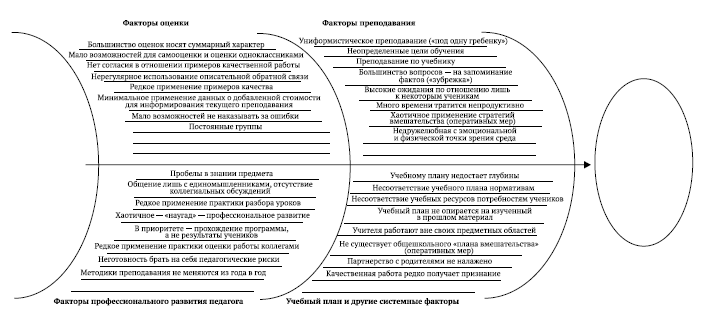 Далее команда учителей начала анализировать свои позитивные показатели, используя для этого диаграмму Исикавы («рыбий скелет»), представленную на рис. 7.7.