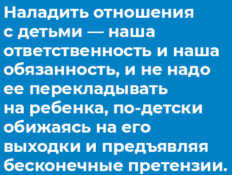 Вспомним, как мы смотрели на ребенка, когда он был маленьким, как радовались ему и как он радовался нам. Это сейчас, в ситуации перманентного конфликта, мы друг другу, кажется, не рады. Значит, надо вернуться в то забытое состояние и дать ребенку почувствовать, как мы счастливы, что он у нас есть. Показать, что мы общаемся с ним с удовольствием и принимаем его таким, каким он преподносит себя миру, не оценивая, не критикуя. Как бы независимо он себя ни вел, сколько бы ни делал вид, что ему все безразлично, ему, конечно, важно знать, что его любят, ценят, что по нему скучают. Если мы убедим ребенка, что это так и есть, он начнет потихоньку оттаивать.