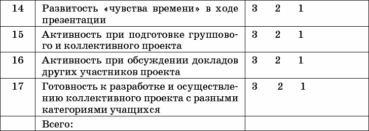 – работа в группе (учитывается личный вклад в проект каждого участника, умение продуктивно взаимодействовать с другими участниками проекта)[15].