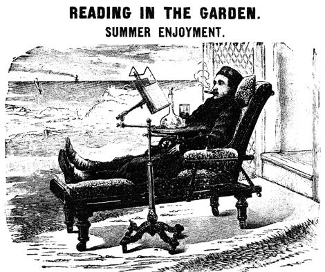 Надпись на английском: «Чтение в саду. Летние удовольствия»