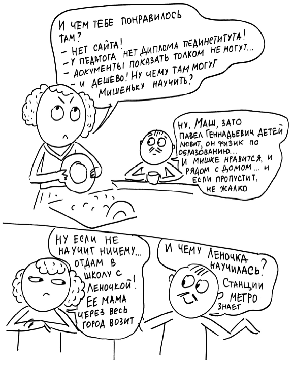 По моим наблюдениям, дипломом можно поинтересоваться только в том случае, когда чей-то непрофессионализм буквально бьет в глаза, порождая когнитивный диссонанс: «Как, неужели у этого человека есть диплом?» И кстати, если вам категорически не понравился проведенный педагогом урок, то вас вряд ли успокоит факт наличия десяти дипломов об образовании и повышении квалификации.