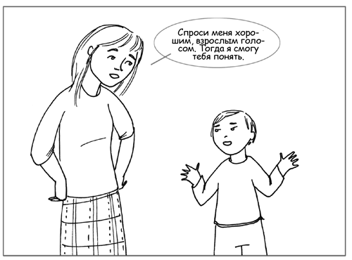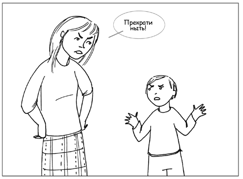 Возьмем для примера один из худших кошмаров для любого родителя – детское нытье. Кому из нас не надоело слышать этот неотвязный, вызывающий оскомину, капризный скулеж, от которого хочется залезть на стену и зажать уши? Типичный родительский отклик: «Перестань ныть!» А если хватит изобретательности: «Отключи хныкалку» или: «Что с тобой? Я не понимаю скулеж. Хочешь, чтобы тебя услышали, говори по-человечески».