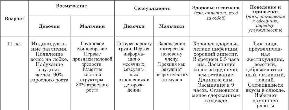 Какова «хронология» поступления информации о вопросах пола, когда узнают о месячных, о сексуальных отношениях и деторождении? Согласно Жезеллу, эти сведения начинают поступать с одиннадцати лет.