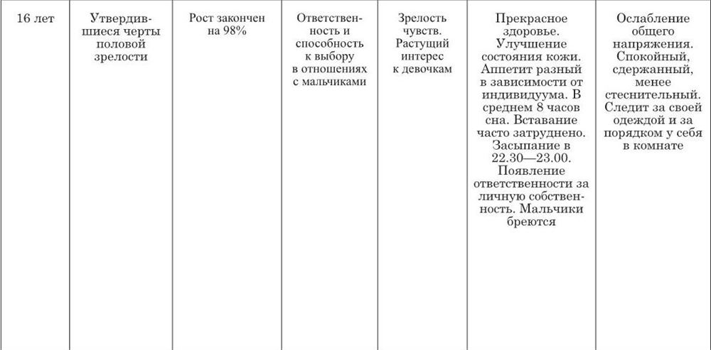 Некоторые моменты поведения, например когда ребенок в десять лет не моется, не интересуется нуждами семьи, зависят только от воспитания. И исследование несовершенно не только потому, что проводилось давно, – ему вредит то, что проводилось оно среди детей из пуританских семей, а зафиксированные данные о реакциях рассматриваются относительно произвольно взятой нормы, которая тем не менее определяет «минимальный» возраст.