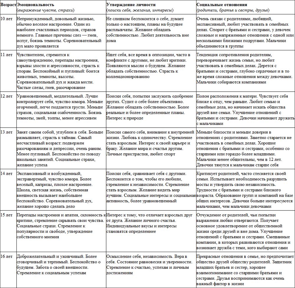 Взросление и поведение подростков от 10 до 16 лет (физиологические параметры)